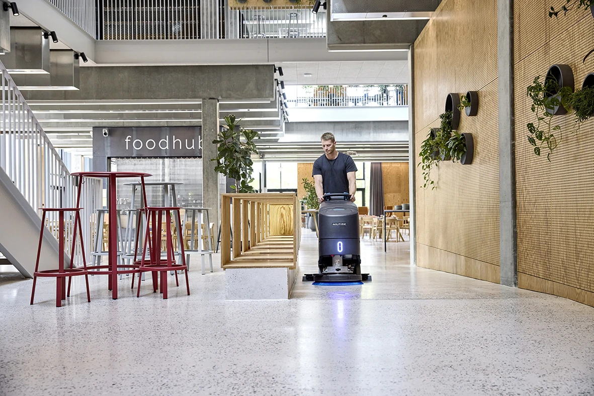 Nilfisk SC550 to prowadzony automat szorująco-zbierający z trakcją, zaprojektowany z myślą o maksymalnej efektywności i wygodzie pracy. Urządzenie wyróżnia się intuicyjną obsługą oraz łatwą konserwacją – krótkie, jednorazowe szkolenie wystarczy, aby operator mógł rozpocząć pracę na profesjonalnym poziomie. SC550 zapewnia skuteczne czyszczenie nawet w trudnych warunkach, przy jednoczesnej optymalizacji zużycia wody, energii i detergentu.