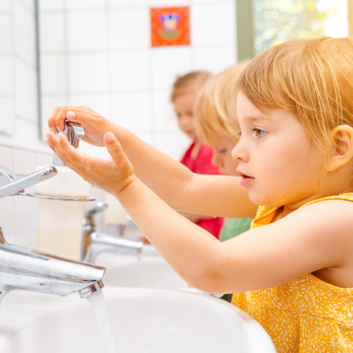 Należy zwilżyć dłonie pod wodą, a następnie nałożyć na nie odpowiednią dawkę mydła, używając do tego przycisku dozownika pianowego. Namydlić dłonie, a następnie spłukać czystą wodą.