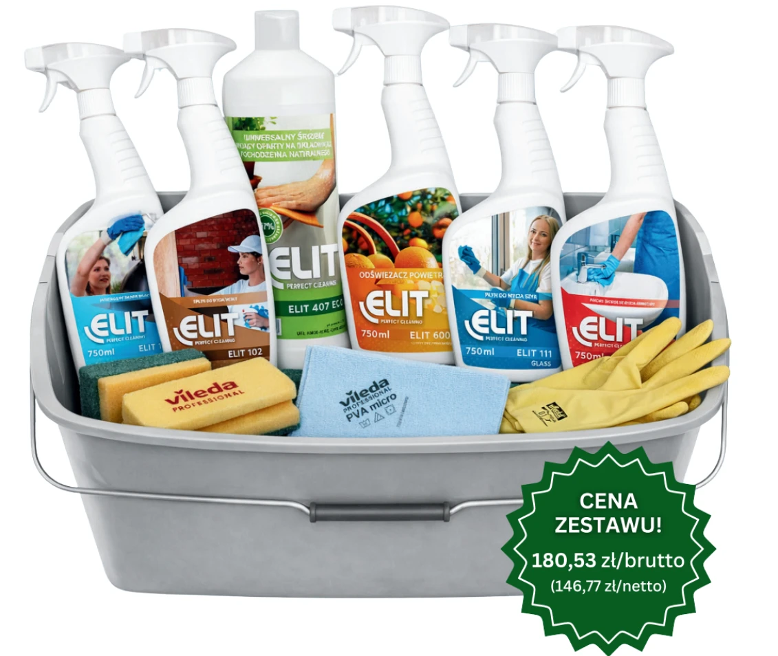 Kompleksowy zestaw do utrzymania czystości, który łączy profesjonalne środki chemiczne marki ELIT z wysokiej jakości akcesoriami Vileda. To rozwiązanie stworzone z myślą o wygodnej i skutecznej pracy zarówno w obiektach komercyjnych, jak i w domu. Zestaw pozwala zadbać o różne powierzchnie – od mebli, przez łazienkę i kuchnię, aż po szyby i elementy wyposażenia.
